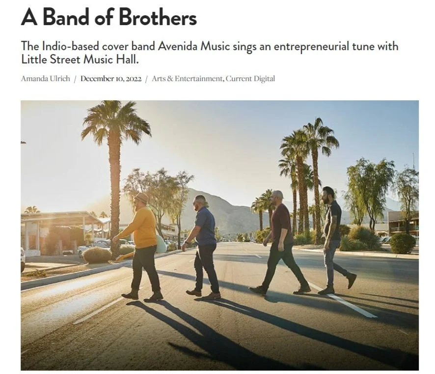 We started as a cover band in the greater Palm Springs and have provided music for weddings, corporate events, parties, and events throughout the Coachella Valley and Southern California. Our goal is to build a strong community where musicians thrive personally and professionally. We play live music, teach music programs, book live music and DJ’s, build strong music communities and operate places for people to experience live music.
